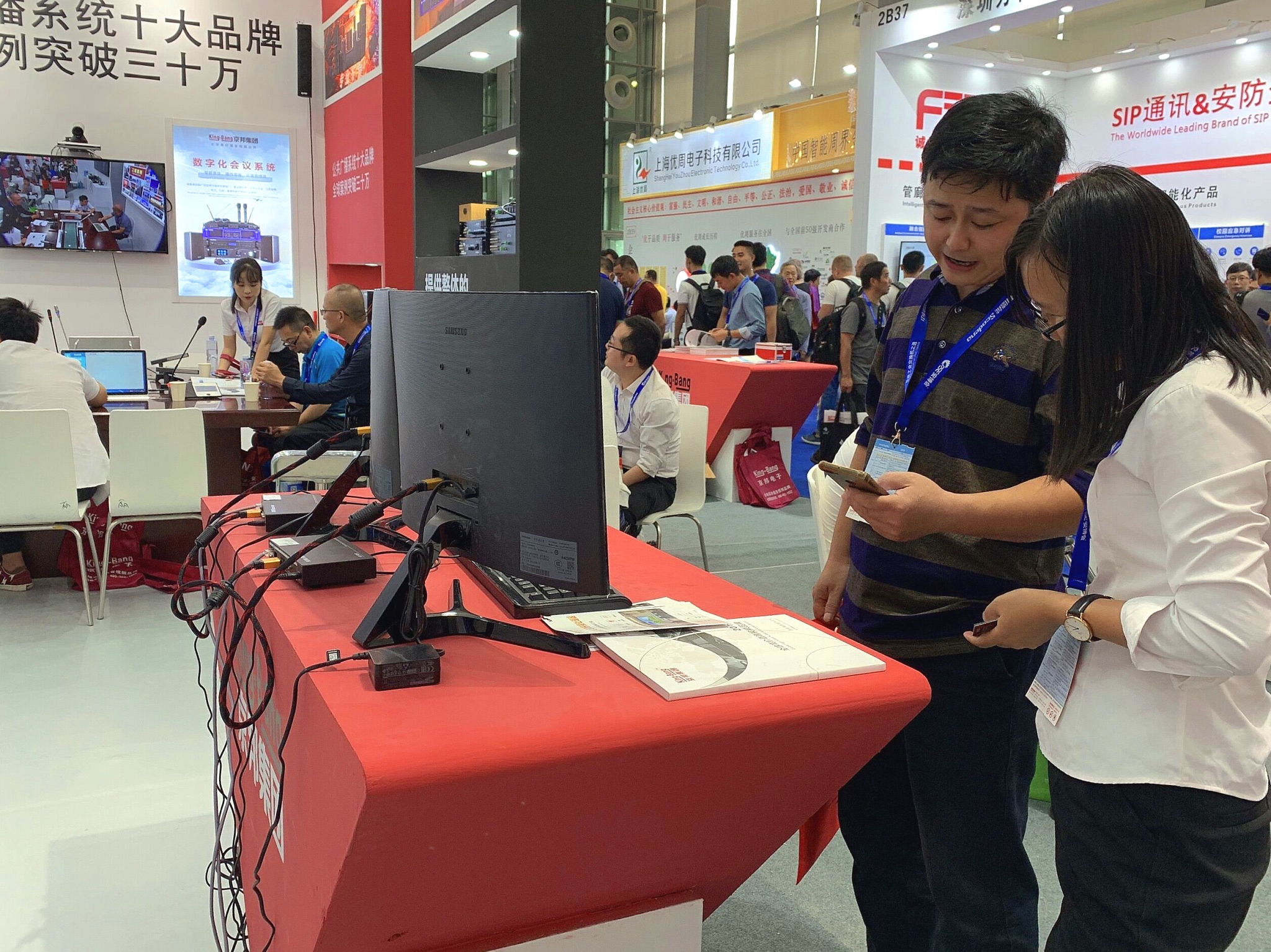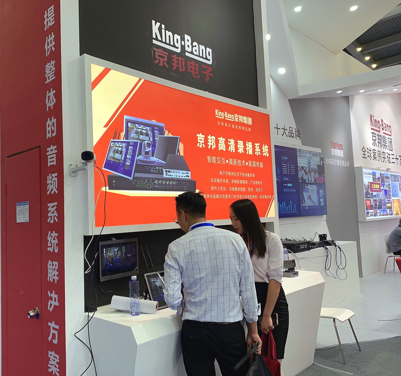 直擊展會現(xiàn)場·業(yè)務(wù)員為客戶講解京邦新視頻系統(tǒng)