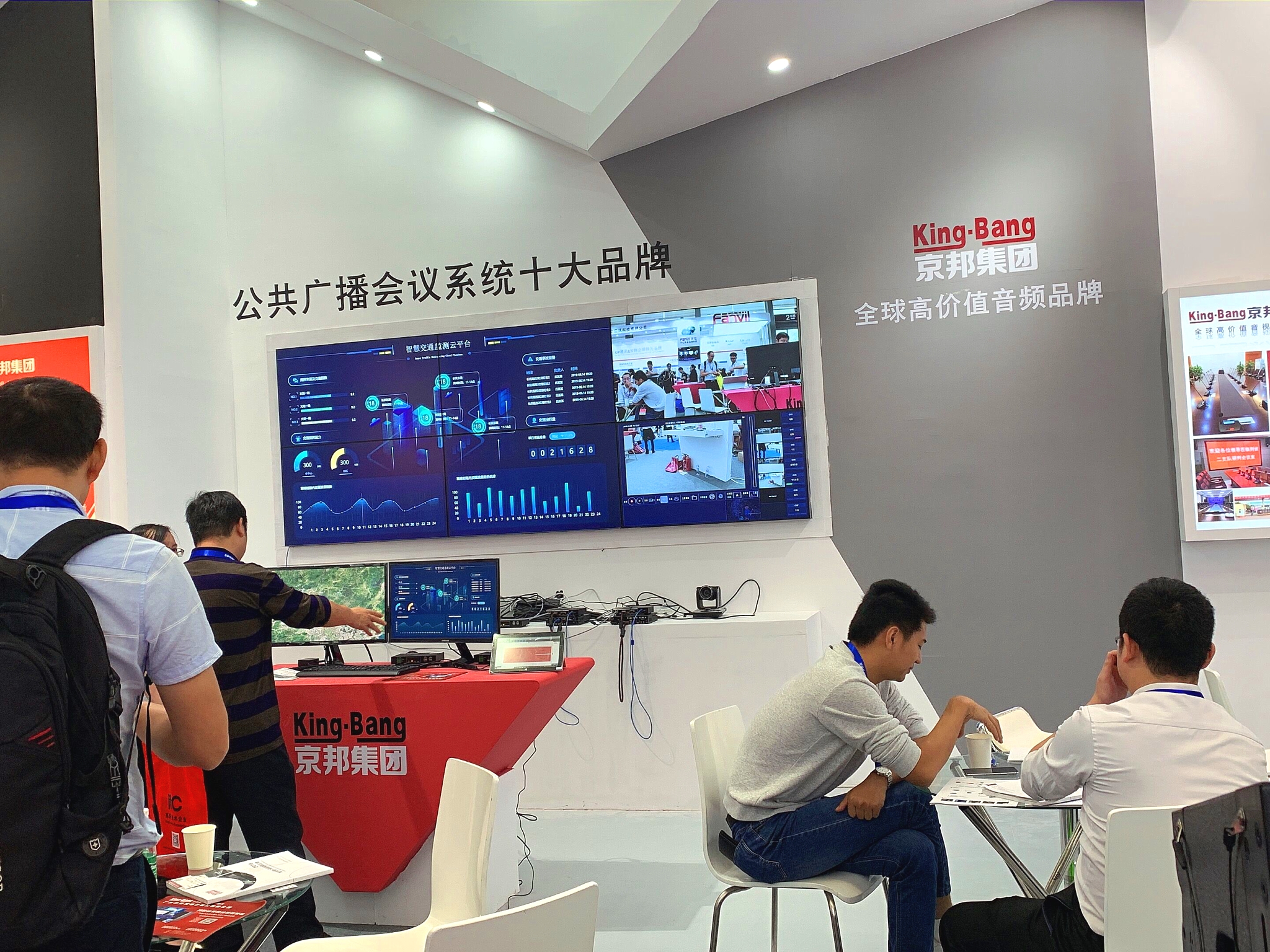 京邦(KING-BANG)作為本次安博會的先進(jìn)音視頻品牌受邀參展,京邦攜創(chuàng)新研發(fā)產(chǎn)品(分布式協(xié)作管理系統(tǒng)、LCD/LED拼接處理器等)、音視頻解決方案等產(chǎn)品方案參加以“大安防、大數(shù)據(jù)、大產(chǎn)業(yè)”為主題的安博會。