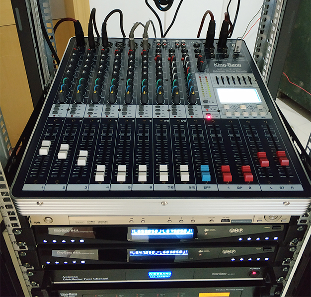 音頻環(huán)境的建立離不開電聲設(shè)備,它由以下四個(gè)部分組成:聲源設(shè)備——指拾音設(shè)備、影音信號(hào)播放設(shè)備如:拾音話筒、CD、MD、DAT、DVD等設(shè)備;調(diào)控設(shè)備——指對(duì)聲源設(shè)備送出的音頻信號(hào)等多路的音頻信號(hào)進(jìn)行前級(jí)的放大和混音輸出、音頻信號(hào)處理的設(shè)備,如:調(diào)音臺(tái)、